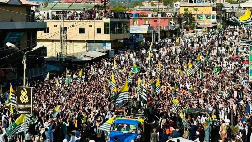 The roads of Pakistani Administered Jammu Kashmir have been transformed into battlegrounds of resistance. What began as a peaceful mobilization around a 38-point charter of demands has turned into a popular uprising against the ruling elite. Local police, along with Islamabad Police, Frontier Constabulary, Punjab Constabulary, and Rangers, have been deployed in Kashmir to crush the demonstrations, and a total blackout and internet curfew have been imposed since 28 September. Reportedly, eleven protesters have so far been killed and dozens wounded in different parts of Pakistan-held Kashmir.